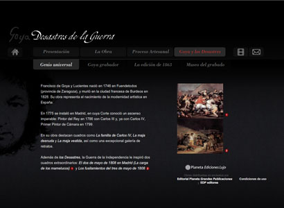 Diseño de la web de «Los desastres de la guerra», serie de grabados de Francisco de Goya.