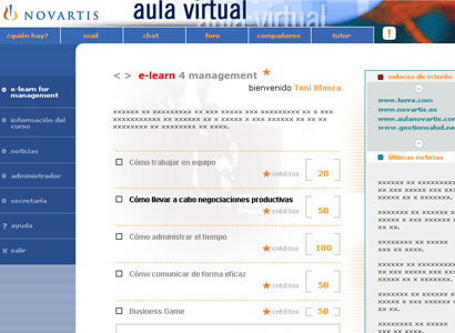 Diseño de diferentes entornos de formación on-line para las empresas Gestión del Conocimiento, Novartis y CEOE.