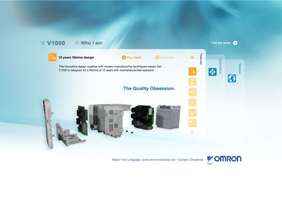 Microsite interactivo para la promoción del dispositivo V1000 programado en ActionScript/Flash.