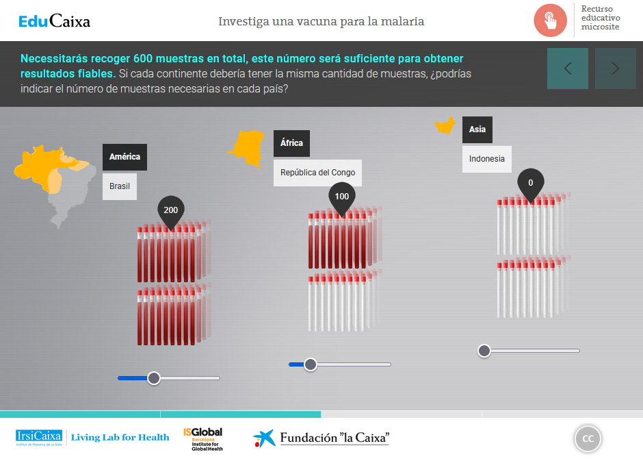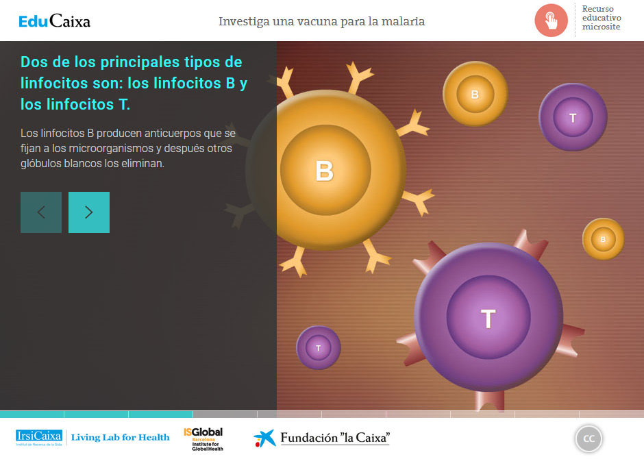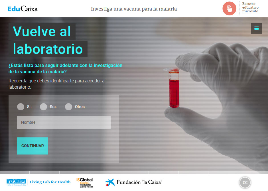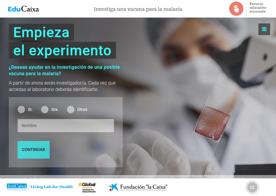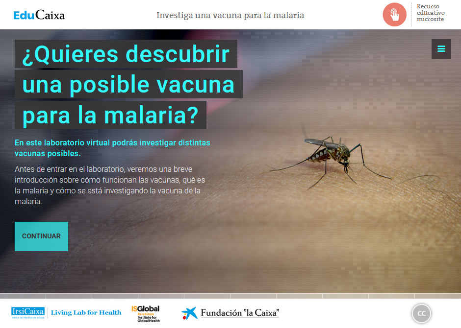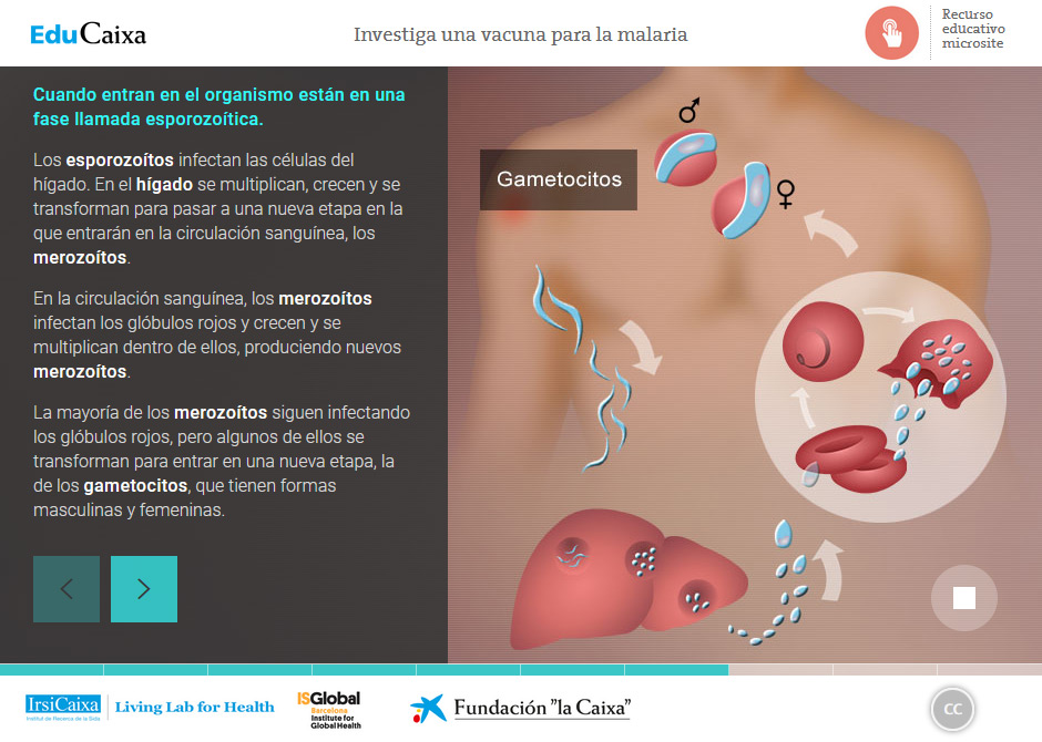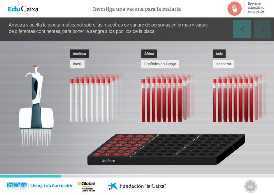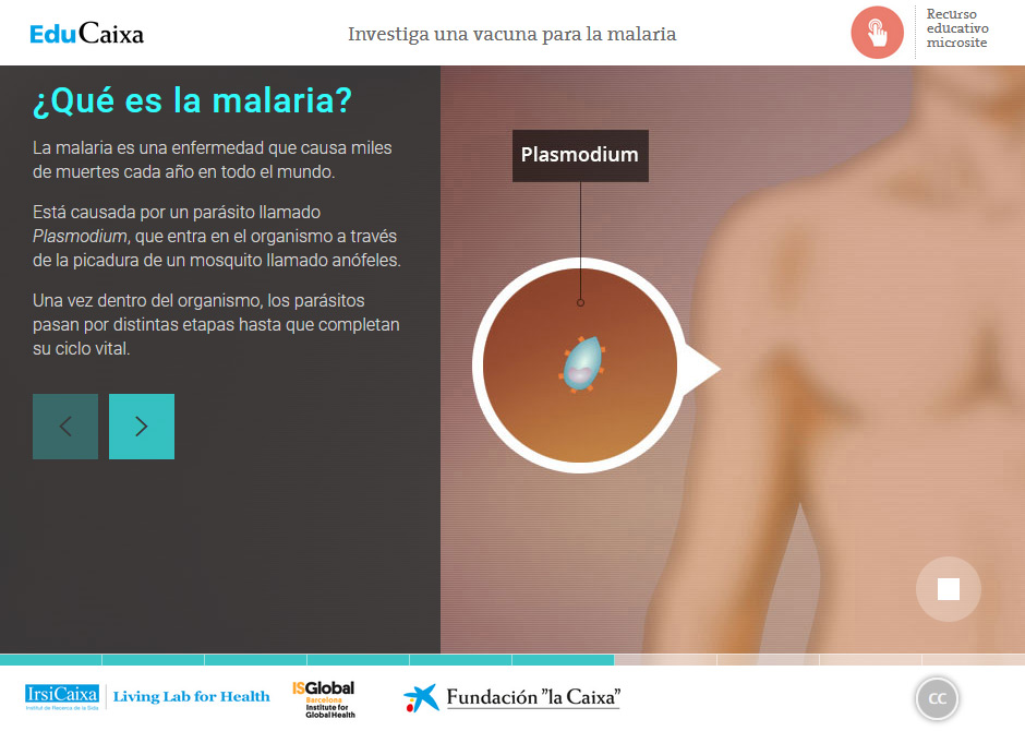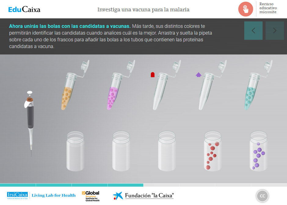 Diseño y programación en html5 del recurso interactivo «Investiga una vacuna para la malaria» sobre investigación científica para el portal EduCaixa.