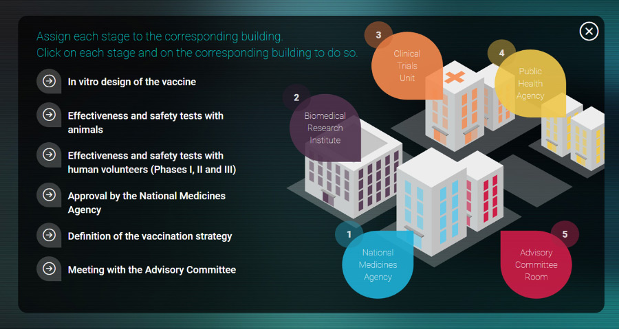 Recurso educativo interactivo desarrollado en html5 para IrsiCaixa y EduCaixa.