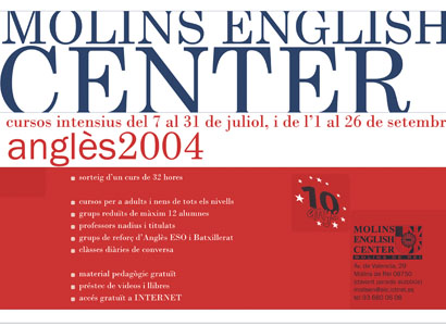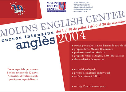 Tríptico promocional para la escuela de idiomas «Molins English Center».