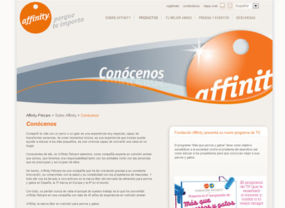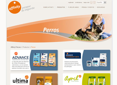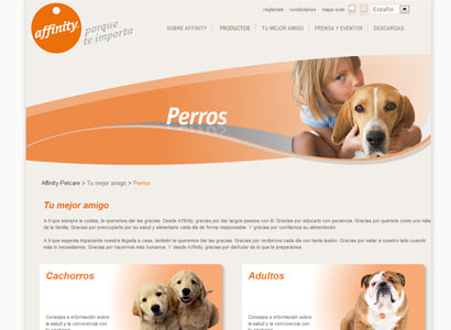 Diseño de las plantillas de la página web de Affinity Petcare.